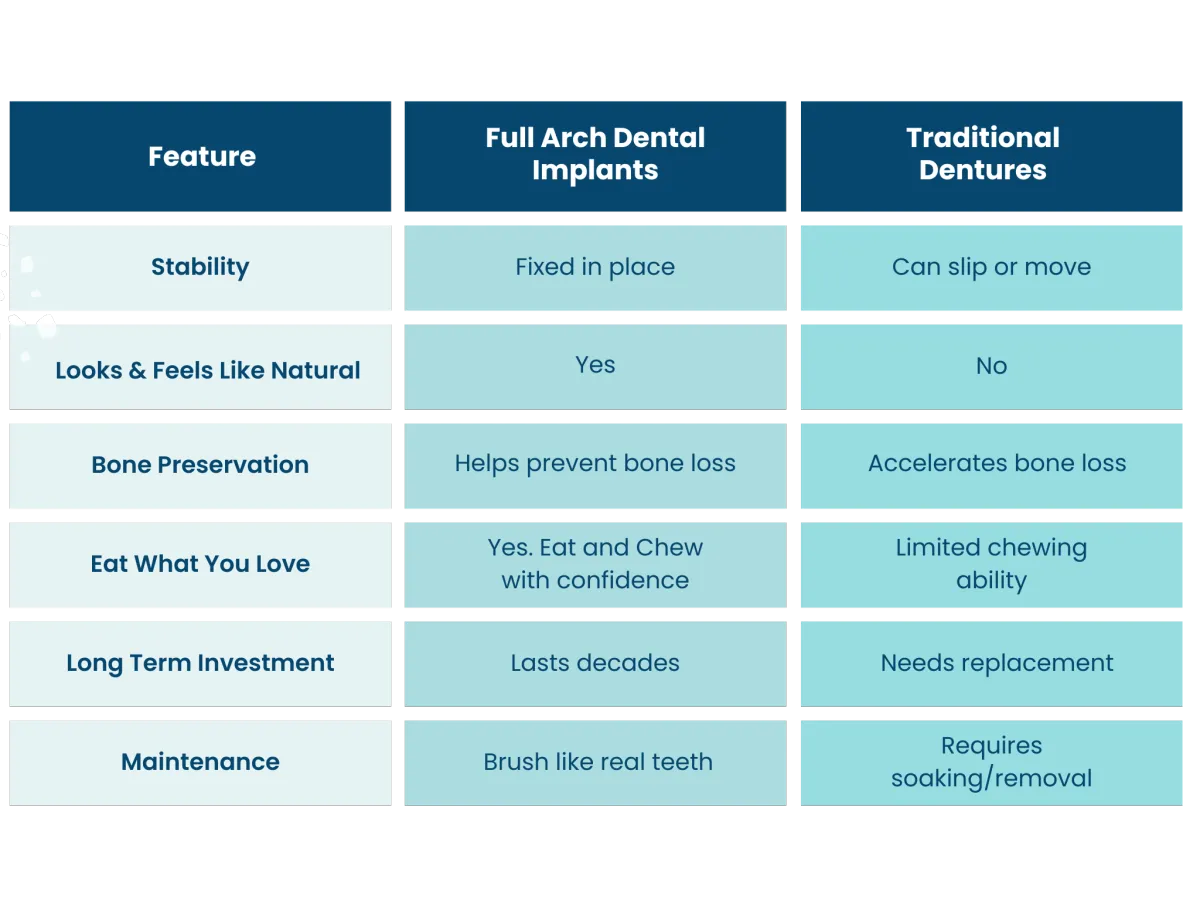 Full Arch Implants vs Traditional Dentures