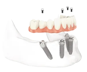 If you are missing a lot of teeth, you don’t need a dental implant for every missing tooth. Instead, you can choose Full Arch dental implants, where you'll only need 4 implants placed with precision per arch to optimize your anatomical bone structure and your cosmetic restorations.